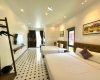 Biệt thự gồm 5 phòng ngủ – 6 WC – 8 giường lớn, bố trí linh hoạt với 1 phòng đôi, 1 phòng ba và 3 phòng đơn, tất cả đều có WC khép kín, cùng 1 WC chung tiện lợi. Mỗi phòng ngủ được trang bị chăn ga T400 cao cấp chuẩn 5*, đầy đủ đồ dùng cá nhân, máy sấy tóc và bàn ủi.